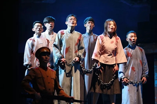 音乐剧来到了第一幕,在众人面对新奇的绞刑架众说纷纷的时候,长官宣布带上一众罪犯,一个个犯人被推搡上了刑场——正是李大钊先生和他的学生们。